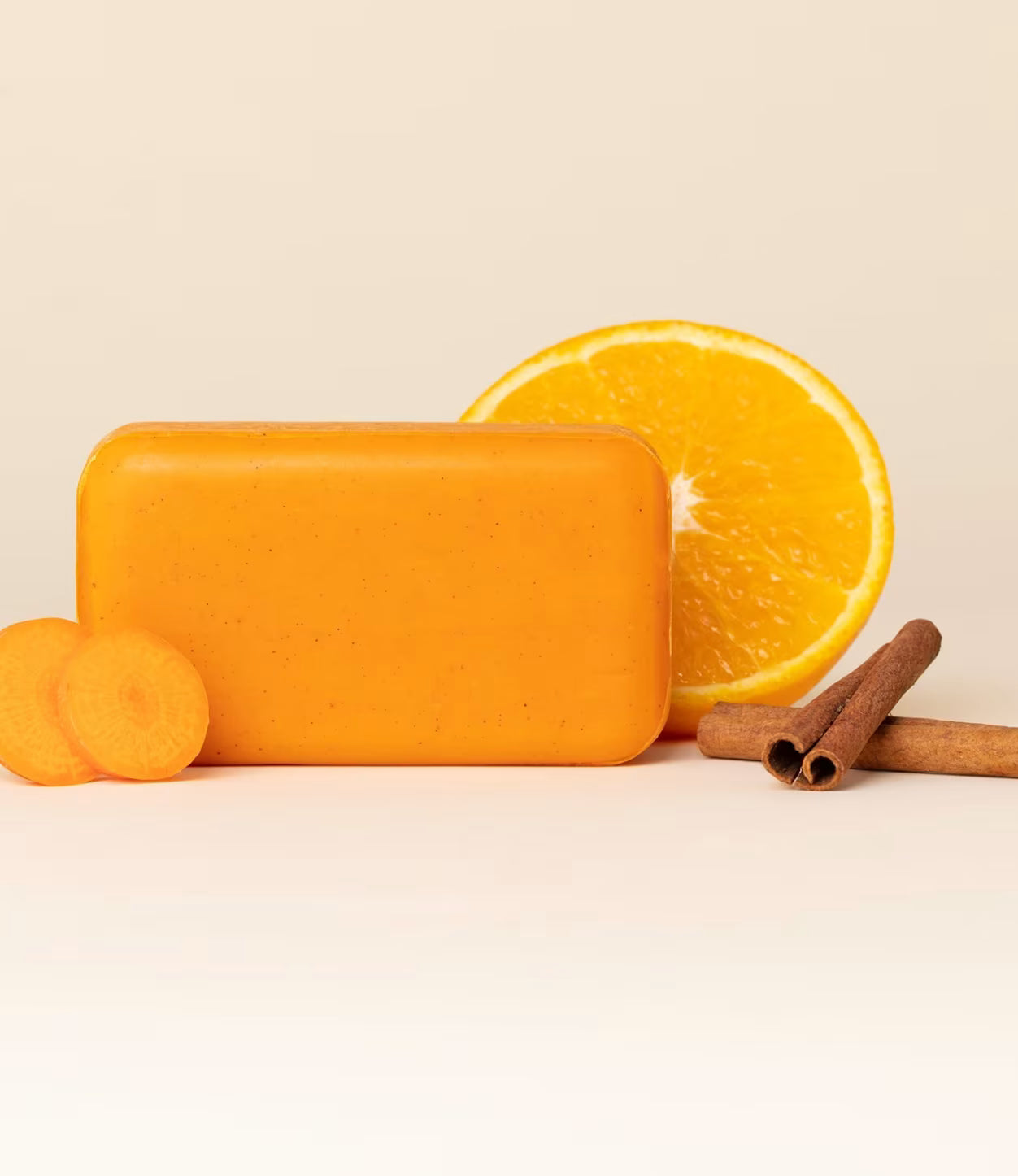 Ingrédients : Sodium palmate** (huile végétale de palme BIO), Sodium palm kernelate** (huile végétale de palmiste BIO), Aqua (eau), Citrus sinensis peel oïl expressed* (huile essentielle d’orange douce BIO), Glycerin** (glycérine), Olea europaea fruit oil* (huile végétale d’olive BIO), Butyrospermum parkii butter* (beurre de karité BIO), Cinnamomum tamala leaf oil* (huile essentielle de cannelle tamala BIO),Helianthus annuus seed oil* (huile végétale de tournesol BIO), Bixa orellana seed powder* (poudre d’urucum BIO), Daucus carota sativa root extract* (extrait de carotte BIO), Sodium chloride (sel), Tetrasodium glutamate diacetate (sequestrant), Citric acid (régulateur de pH), Linalool, Coumarin.